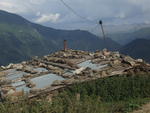 A tak jsme si vybrali pěkný kopec nad Uzungolem a vyrazili. Prošli jsme vesničkou v údolí u jezera (1100 m) a pozdravili se s místní stařenou, která nesla tolik trávy, že v ní nebyla skoro vidět. Popřála nám šťastnou cestu, a tak se nebylo čeho obávat. Cesta lesem byla moc příjemná a konečně nám nebylo vedro. S přibývající nadmořskou výškou stromy skončily a začal pořádnej pařák. Kopec byl o dost vyšší než vypadal, a tak jsme se pořádně zapotili. O to víc nás překvapila používaná polňačka na hřebeni a yayla (horská letní pastevecká vesnička) přímo na vrcholu hory. Po cestě jsme potkali množství domečků, ale všechny byly zjevně opuštěné. Tato yayla žila. Přivítali nás správně po Turecku sklenkou čaje a pak přinesli nakrájený meloun a zejména den starý domácí sýr. A měli pravdu, tak dobrý sýr jsme nikdy nejedli. Pak se ale zatáhlo a pastevci začali mít strach o posečenou trávu. Omluvili se a šli hrabat. Nabídku, že jim pomůžeme, vzali s humorem a z toho, že jsme vážně šli, měli doslova vánoce. Najednou přestali mít strach, že tráva zmokne a s rukama založenýma v bok se smáli,až se za břicha popadali. Rozhodli se, že jsme nikdy nedrželi v rukách hrabě a snad se ani nikdy nedotkli trávy a tak se skutečně bavila celá vesnice. Neměli jsme se urazit? Za práci jsme dostali čistou a studenou vodu z místního pramene a byli jsme puštěni na vesnickou vyhlídku. A ten pohled byl úžasnej, jak už to na horách bývá. Jen vzletět.